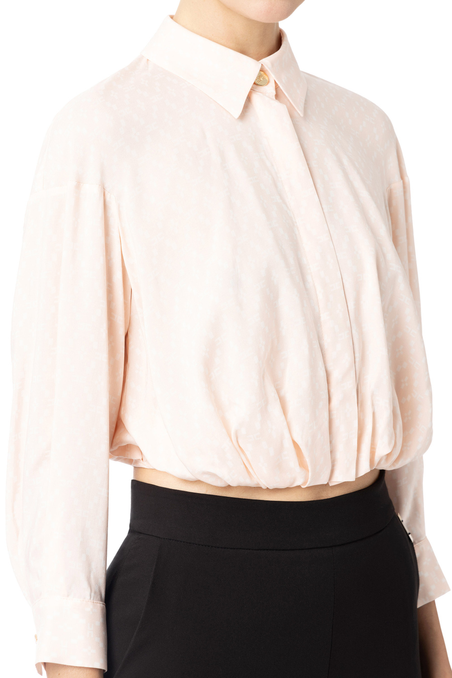 Chemise crop en georgette de viscose avec manches longues froncées. La taille est soulignée par une large bande qui se noue dans le dos