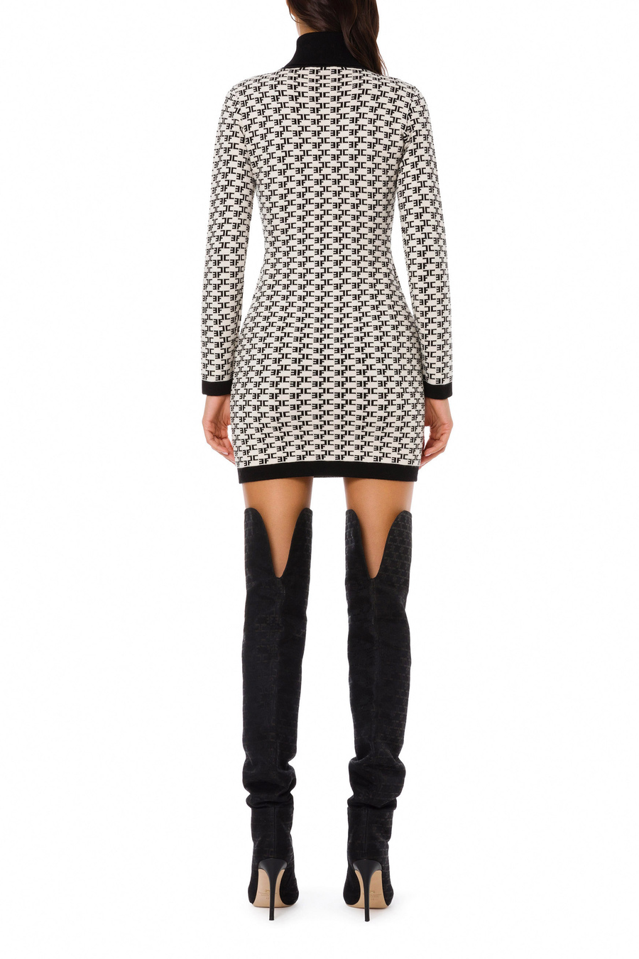 Knit turtleneck dress in logo lettering print perfect for a casual look by Elisabetta Franchi.