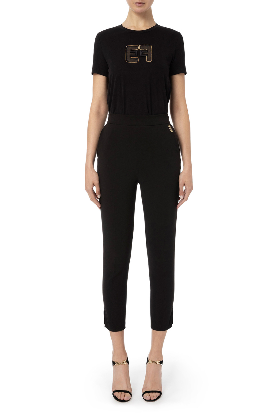 T-shirt in jersey di cotone con applicazione di un oblò di velluto ricamato e logo in metallo dorato