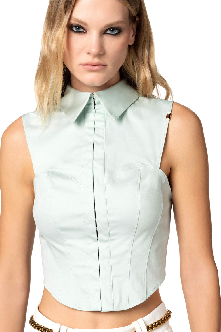 Stretch cropped poplin shirt with draping | Elisabetta Franchi® Outlet